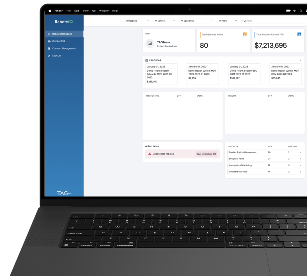 TAG digitizes your contracts, uploads your spend data, and handles the rebate process on your behalf with RebateIQ. This service ensures rebates are maximized, fully managed, and no longer a distraction or afterthought.